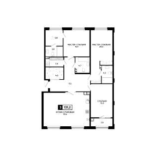 • Евротрешки до 132 м²: кухня-гостиная, мастер-спальня с гардеробной и окна на две стороны