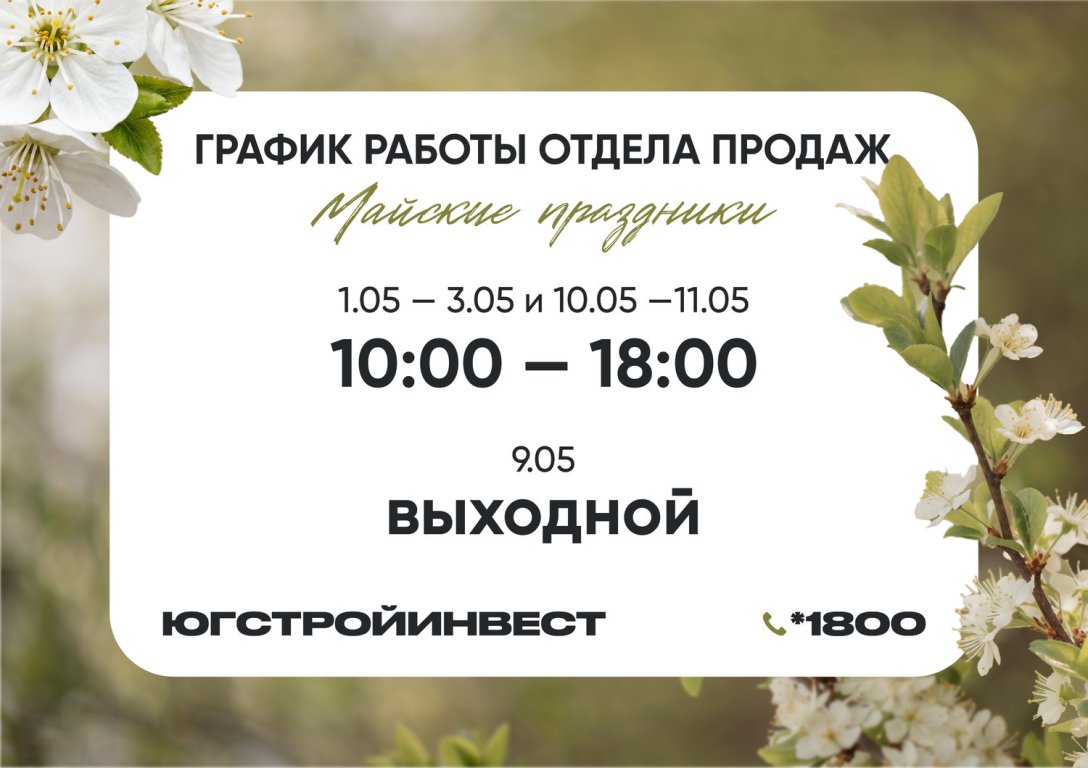 Спешим сообщить, что наши офисы продаж будут работать по особому графику: