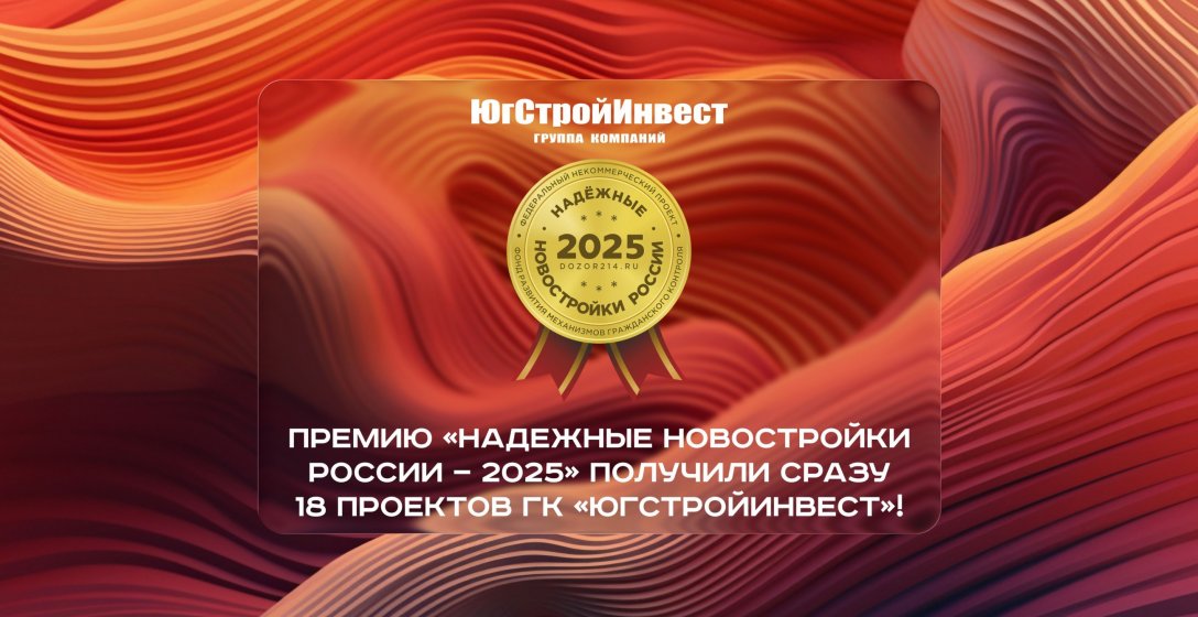 Сразу 18 проектов группы компаний «ЮгСтройИнвест» отмечены дипломами национальной премии «Надежные новостройки России — 2025».
