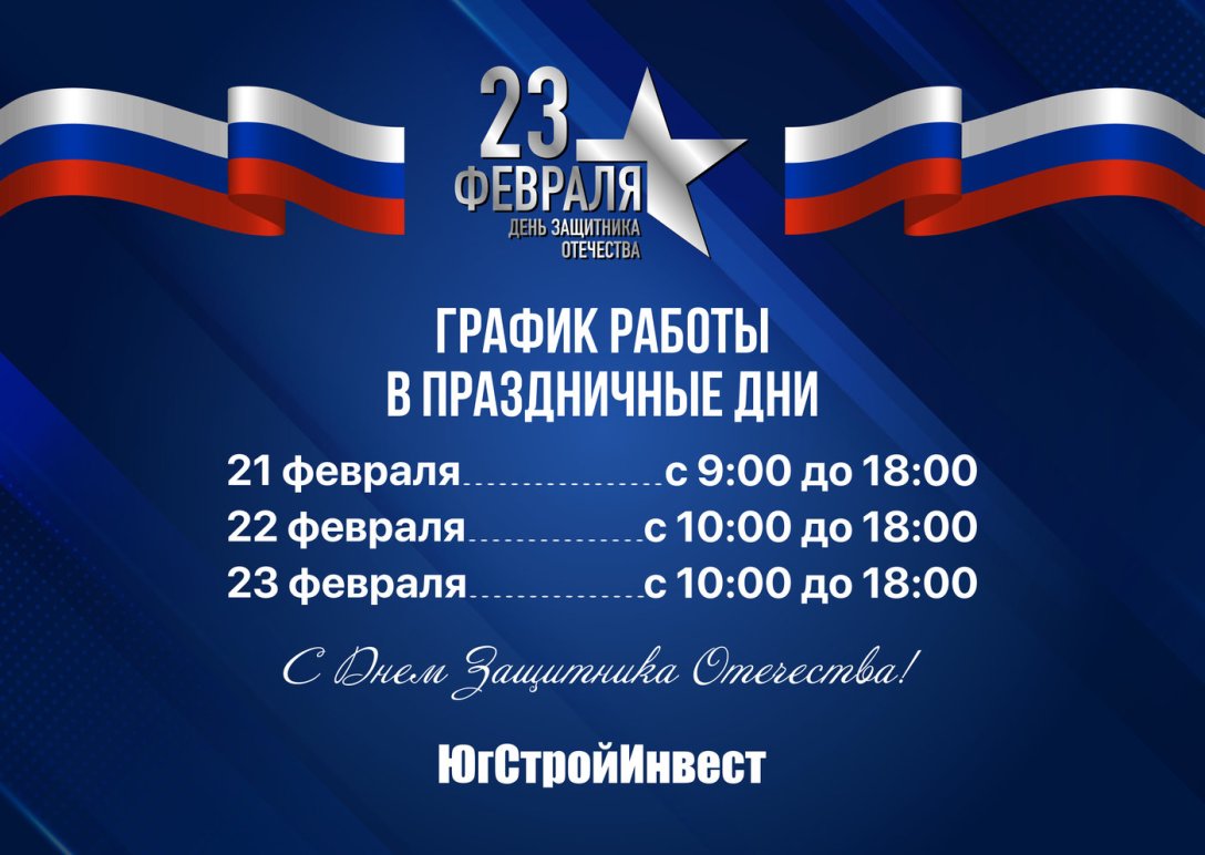 Группа компаний «ЮгСтройИнвест» поздравляет всех, кто стоит на страже мира и спокойствия, кто каждый день вносит вклад в будущее России и защищает главные ценности — семью, дом и Родину. В День защитника Отечества мы желаем вам крепкого здоровья, мира, благополучия и новых побед!