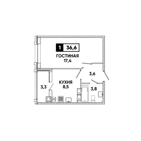 1-комнатная квартира