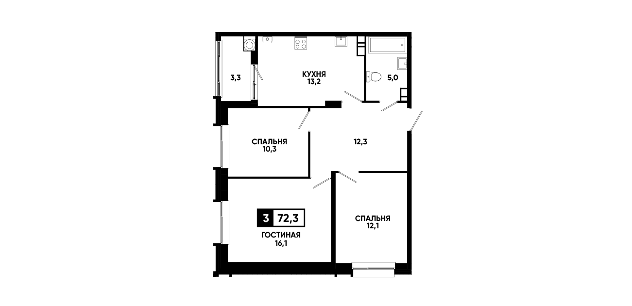 3-комнатная квартира 72,30 м2