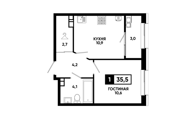 1-комнатная квартира 35,5 м2