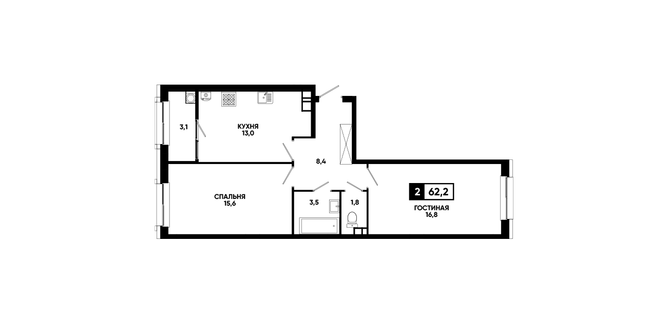 2-комнатная квартира 62,2 м2