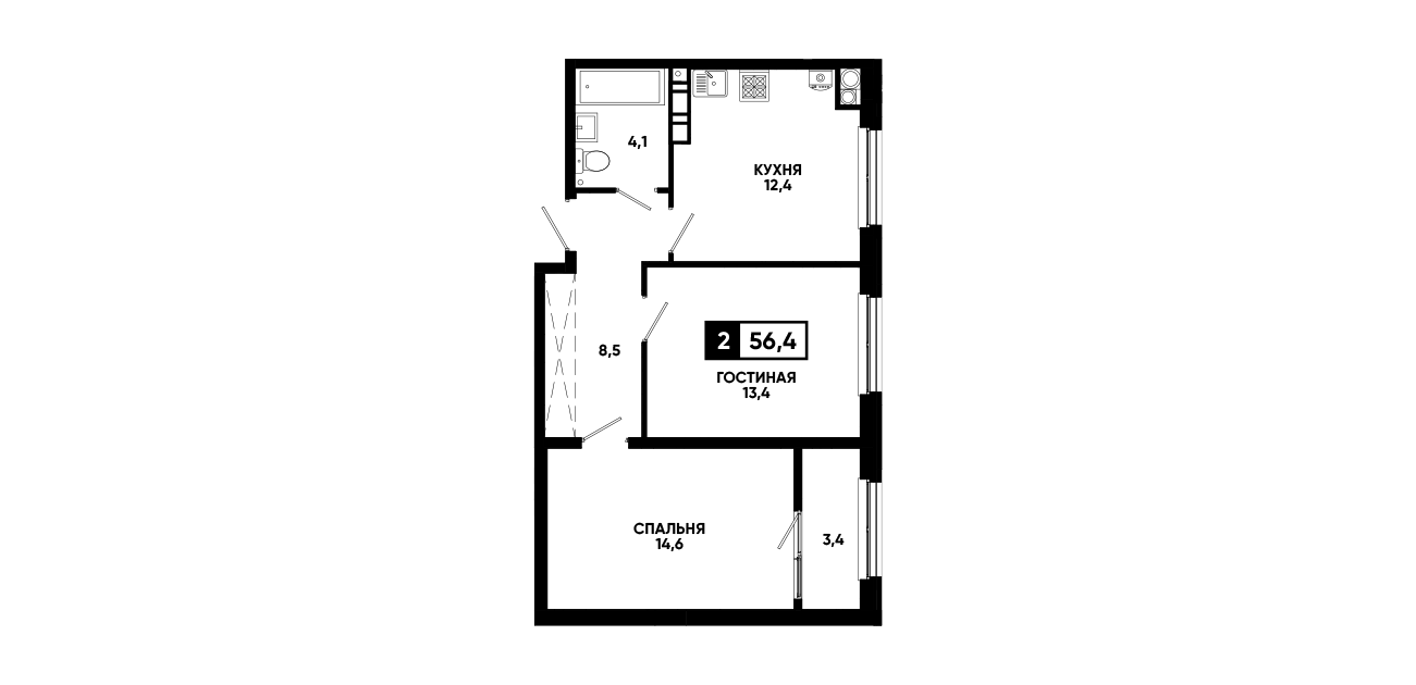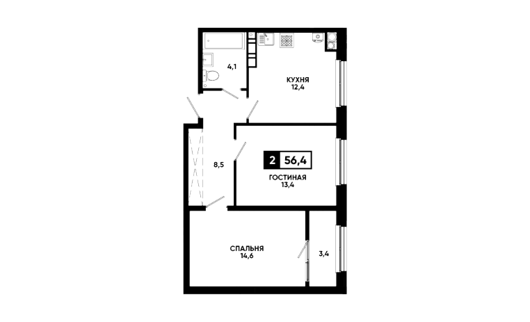 2-комнатная квартира 56,4 м2