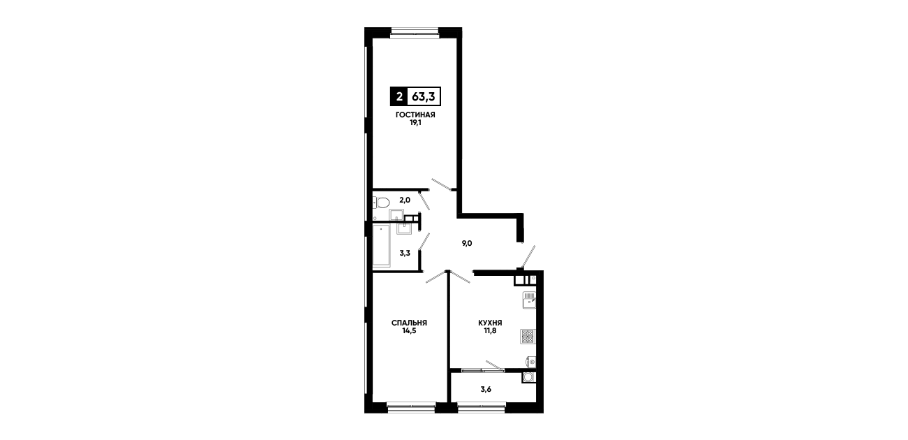 2-комнатная квартира 63,3 м2