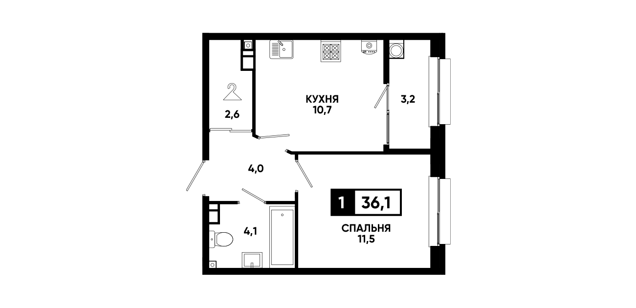 1-комнатная квартира 36,1 м2