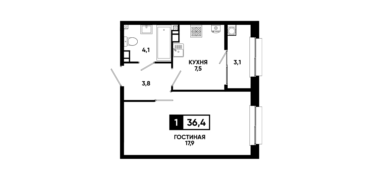 1-комнатная квартира 36,4 м2