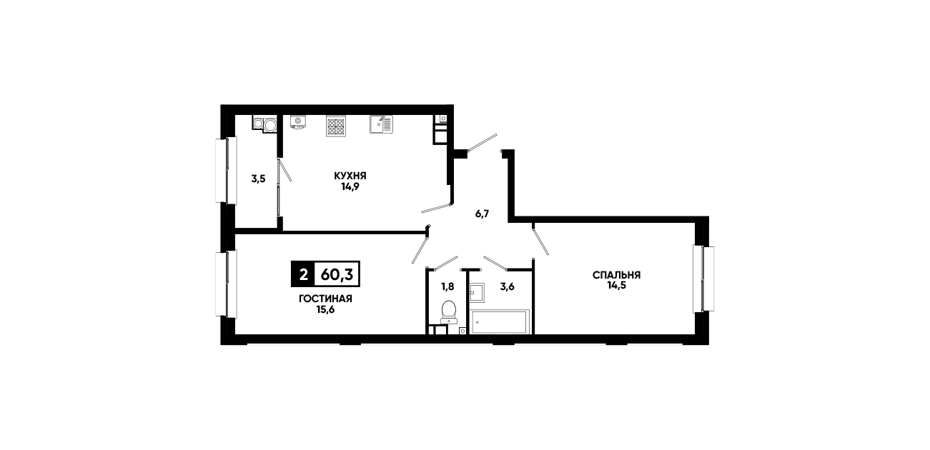 2-комнатная квартира 60,3 м2