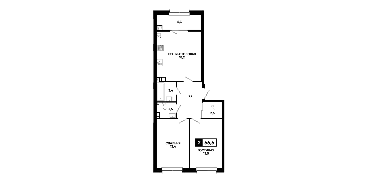 2-комнатная квартира 66,6 м2