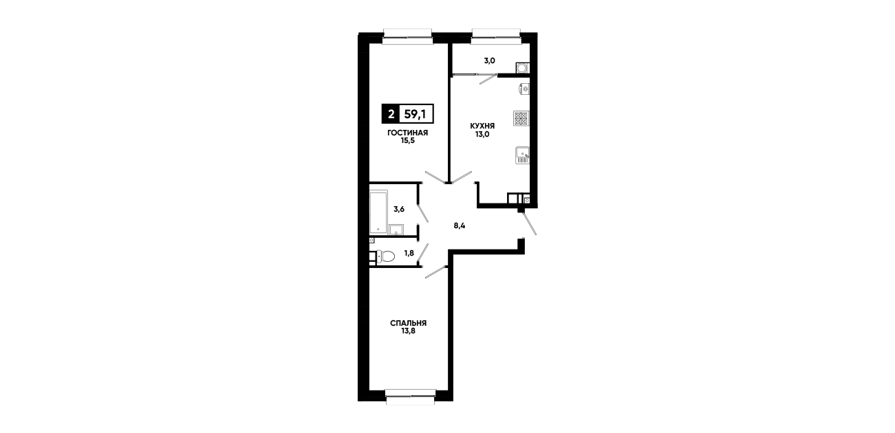 2-комнатная квартира 59,1 м2