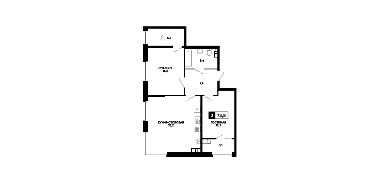 2-комнатная квартира 73,8 м2