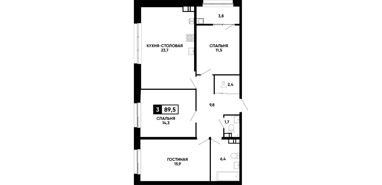 3-комнатная квартира 89,5 м2