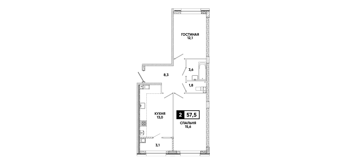 2-комнатная квартира 57,5 м2