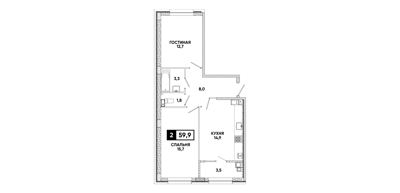 2-комнатная квартира 59,9 м2