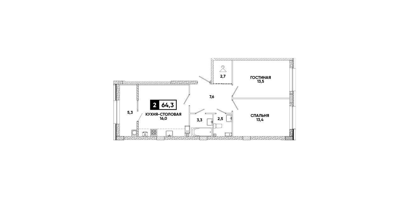 2-комнатная квартира 64,3 м2