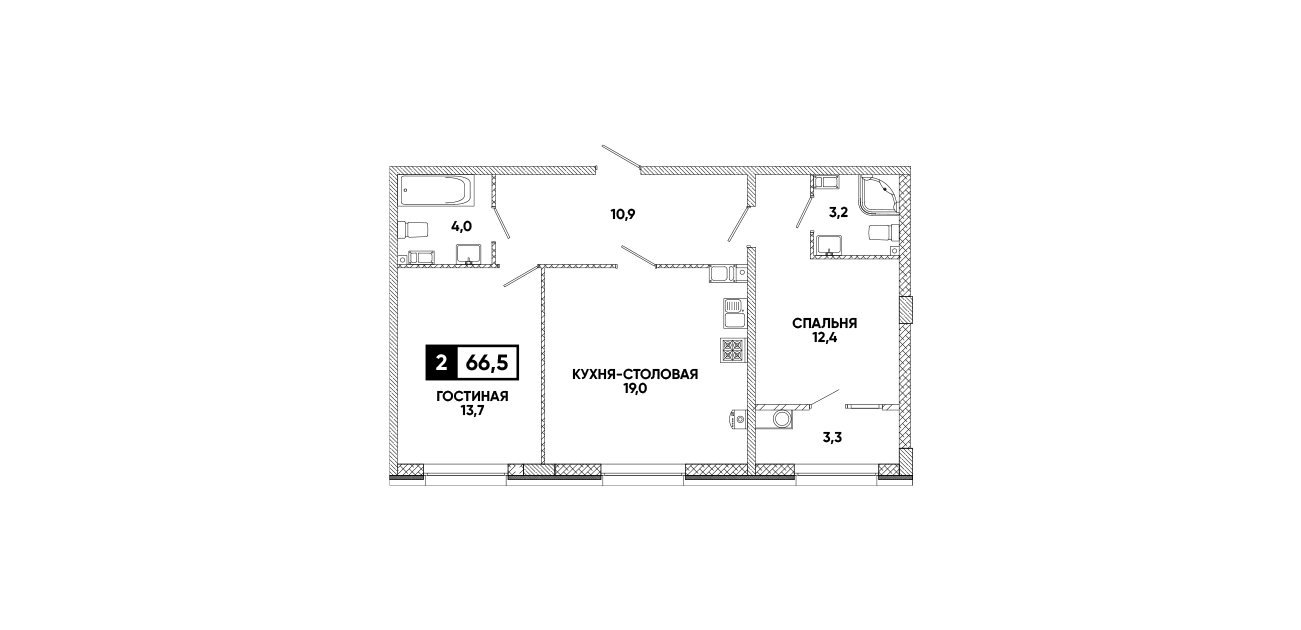 2-комнатная квартира 66,5 м2